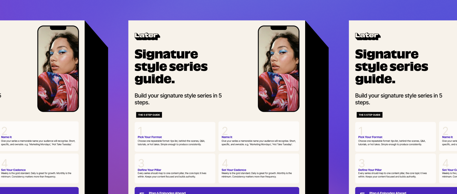 Later's Signature Style Series Guide is a free PDF download that walks you through exactly how to create a recurring social media content series, from concept to launch, in five steps.