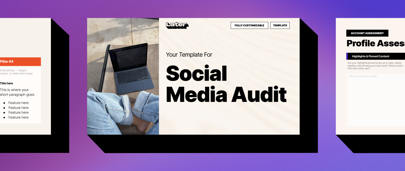 Later's Social Media Audit Worksheet is a free, fully fillable Google Slides download that guides you through a complete social media audit in a single session.