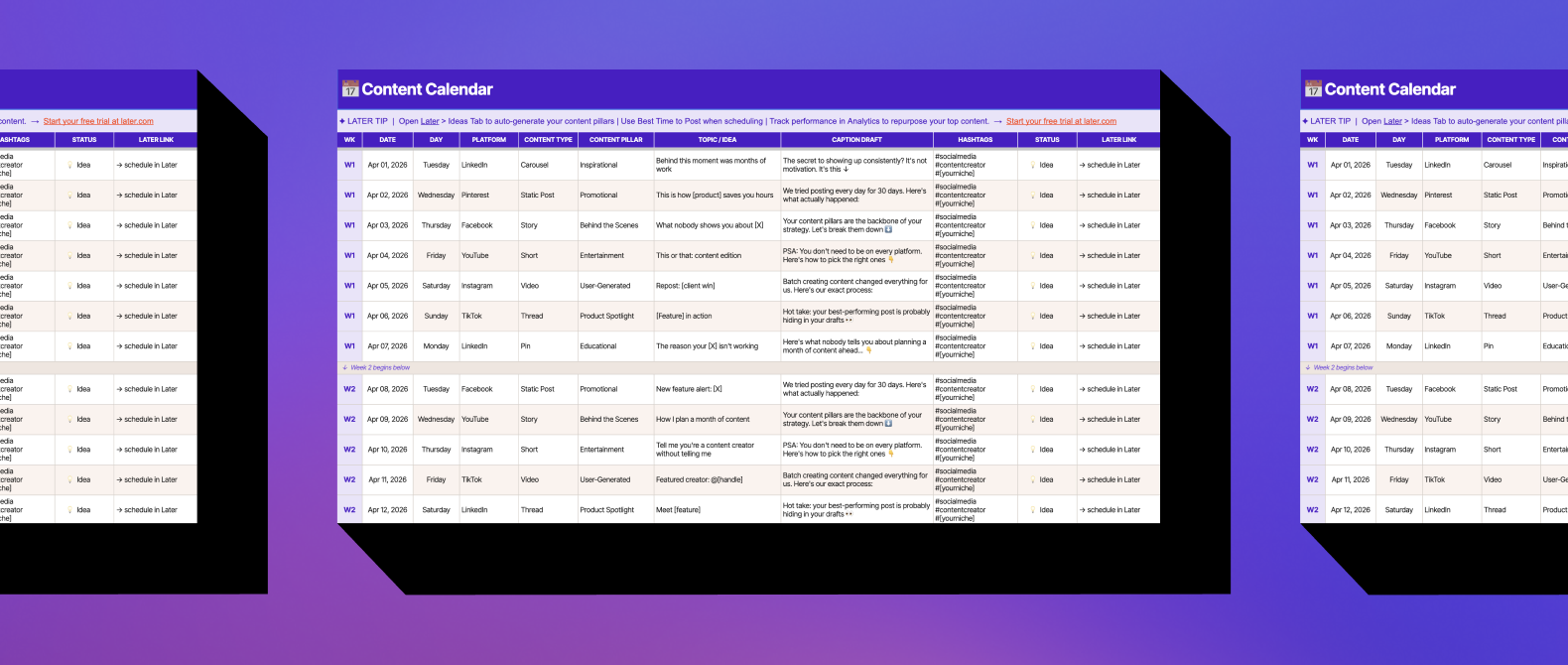 Plan, schedule, and track every post with Later's free Content Calendar Template.